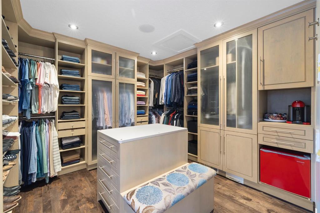 Upstairs, the primary retreat offers a 2-sided fireplace, steam shower with mood lighting and TV, heated floors, jetted tub, his and hers vanities, make-up station, and two redesigned walk-in closets including one with SUNDECK access and a very large second one with an office area. A newly updated kids’ wing has a play area complete with playhouse and 2 oversized bedrooms serviced by a 5-piece bath to complete the floor. The recently upgraded GYM area is spacious and ha an upscale feel with its leather flooring.The walkout level with two access doors, includes a state-of-the-art theatre with recessed seating and illuminated bar, a climate-controlled 104 sqft WINE CELLAR a new full bar with ice maker, dual fridges, dishwasher and microwave, a large recreation area, plus two additional bedrooms and 4-piece bathroom. Walk right out onto a full sports court, kid's playhouse, and aggregate and glass GREENHOUSE.