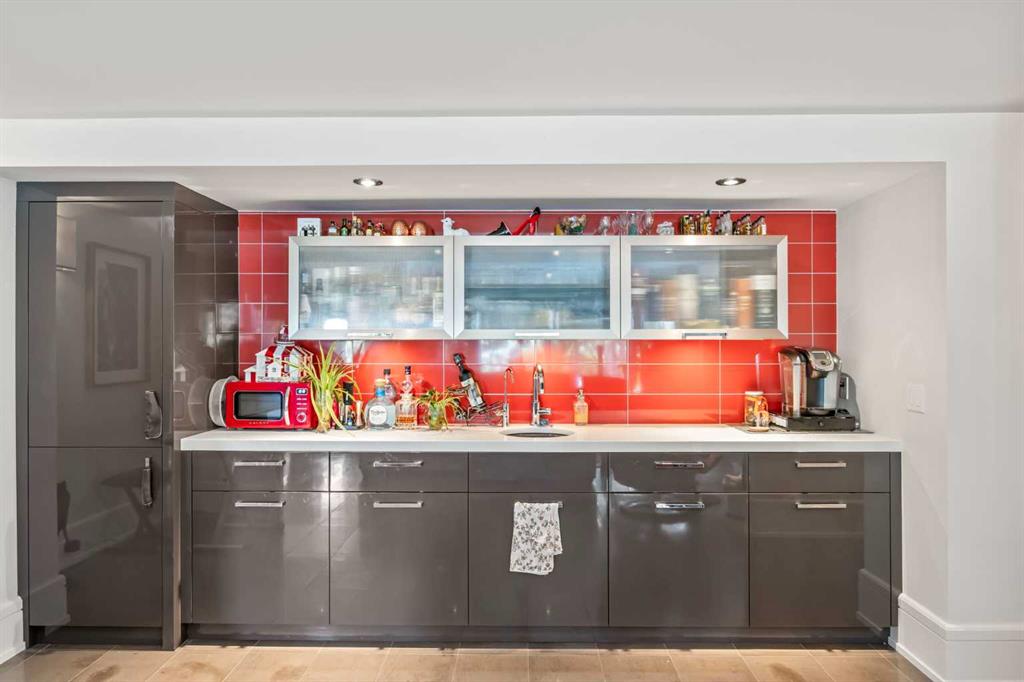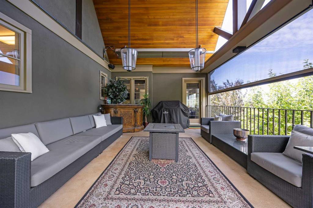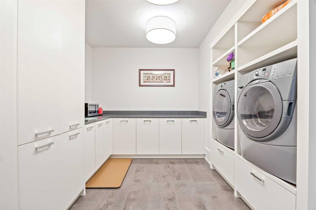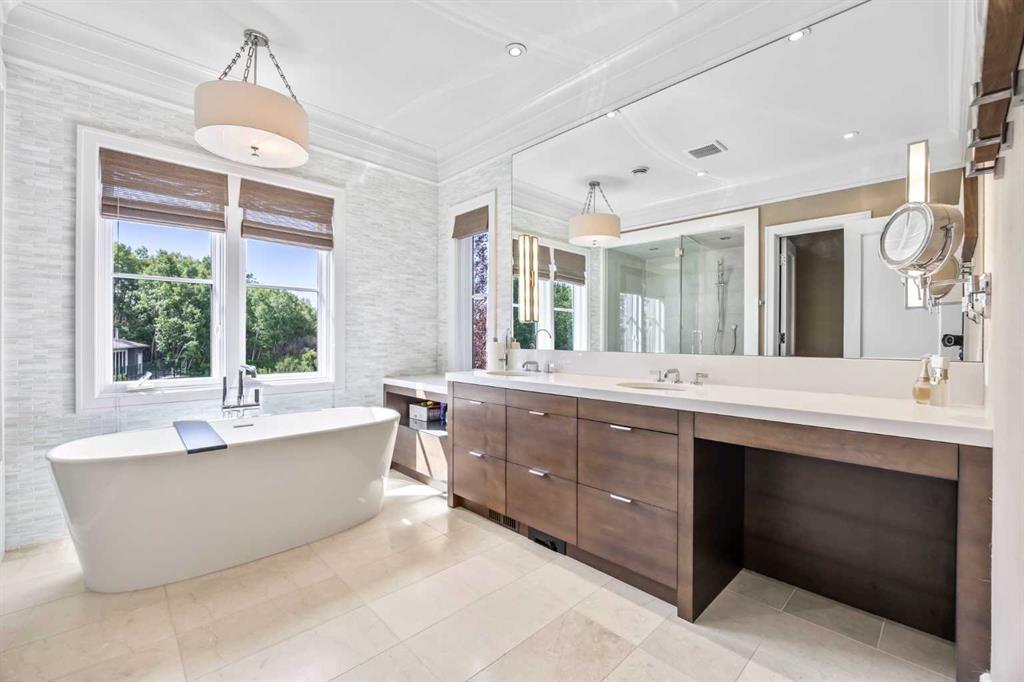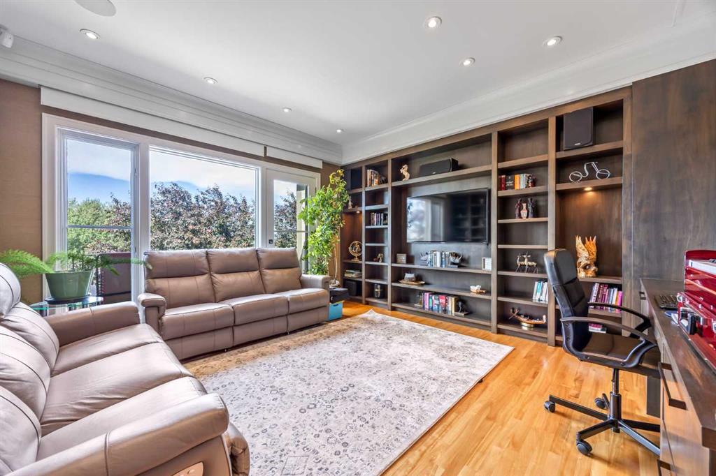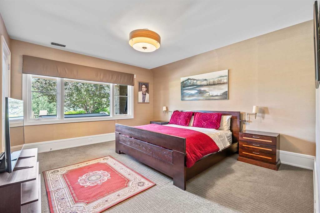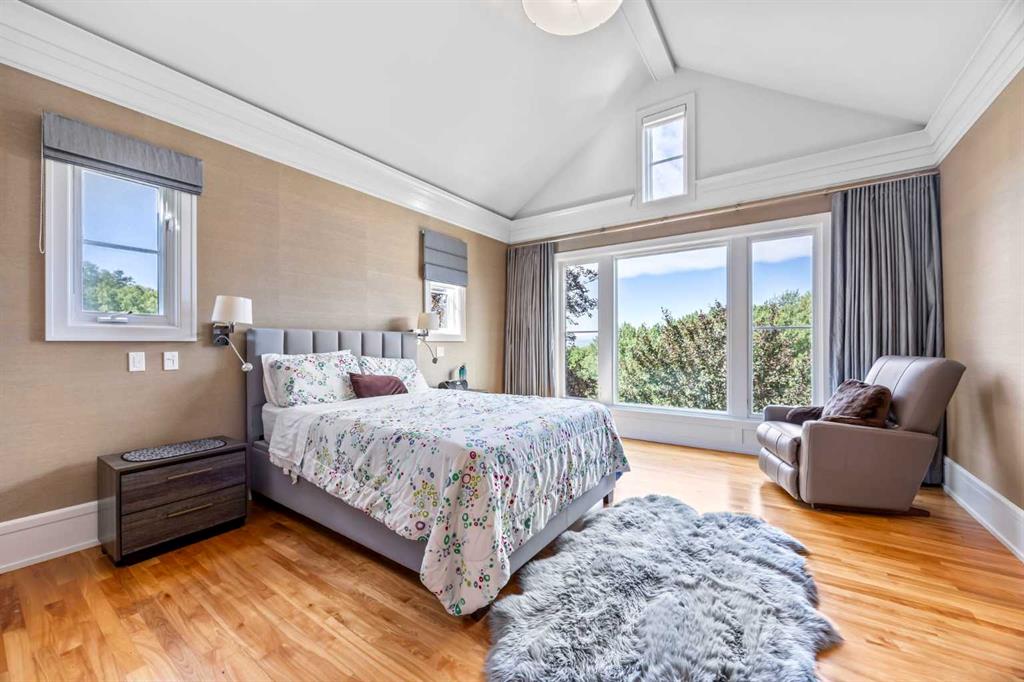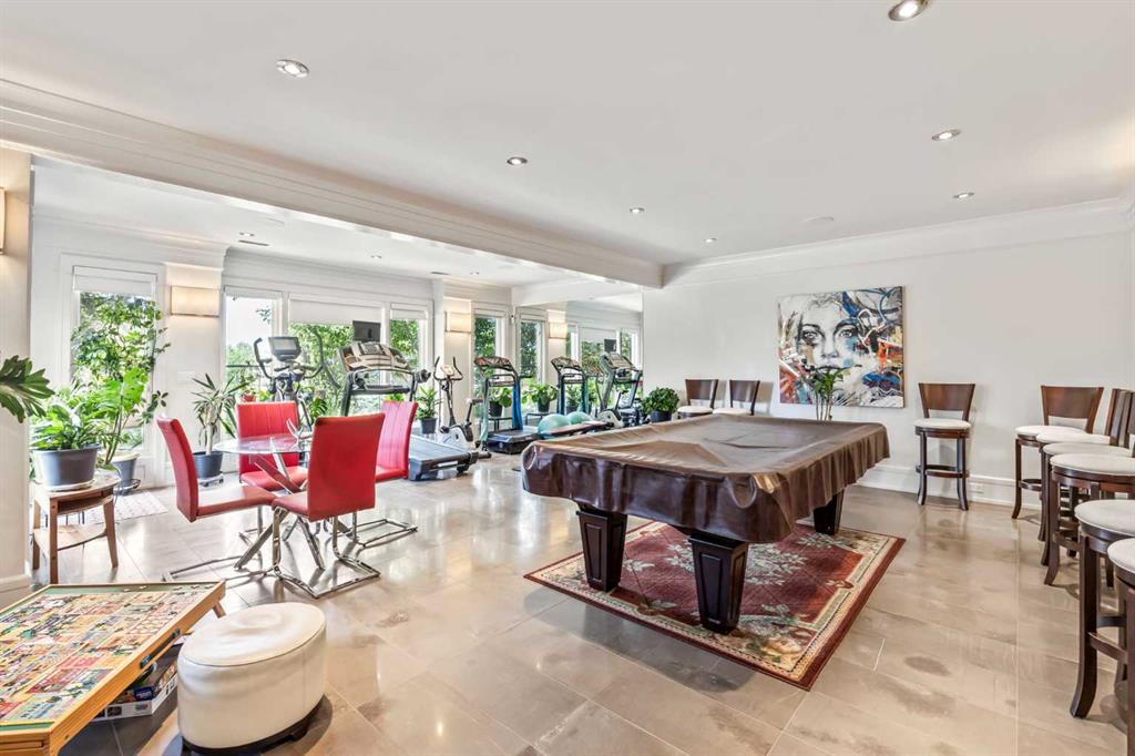 The bright and open walkout basement offers endless possibilities with its floor-to-ceiling windows, radiant heated limestone floors, and a full wet bar featuring a Miele fridge and freezer. This level also includes three additional bedrooms, two full bathrooms, and ample space for a home theatre, gym, or games room.