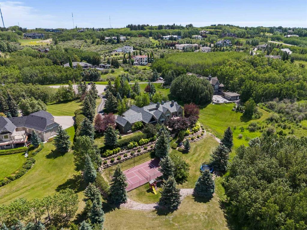 Set on two beautifully landscaped acres at the end of an exclusive Central Springbank cul-de-sac, this extraordinary 3,124 sq ft walkout bungalow enjoys a prime ridge-top position with sweeping views of the Rocky Mountains. Originally custom built by Waterford Homes and extensively renovated by Rockwood Custom Homes, this one-of-a-kind residence offers over 6,000 sq ft of refined living space that blends timeless elegance with family functionality.