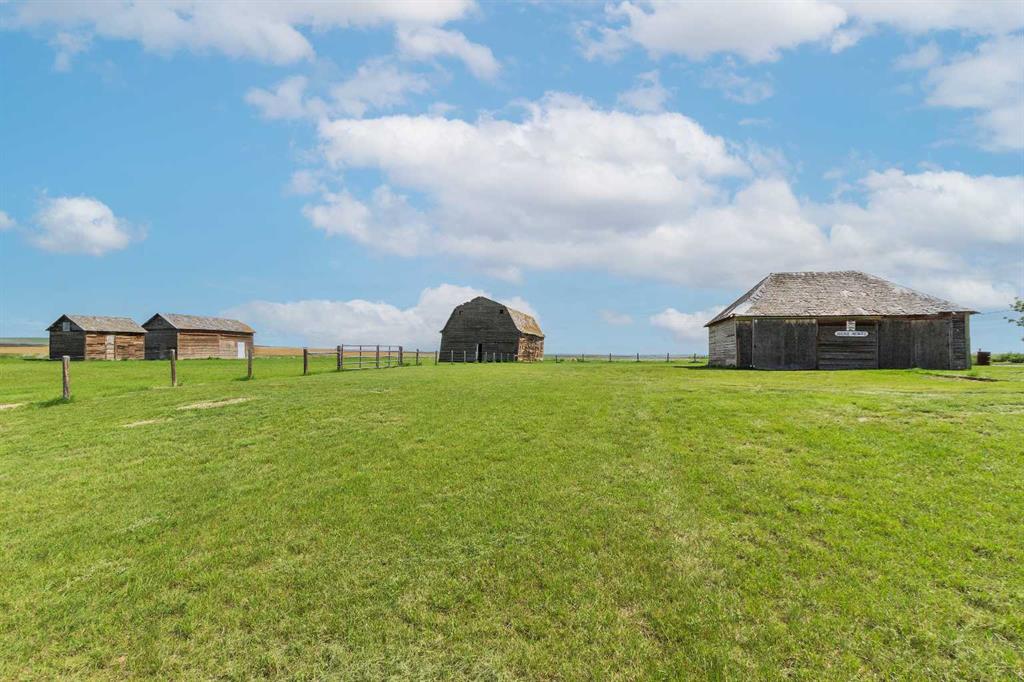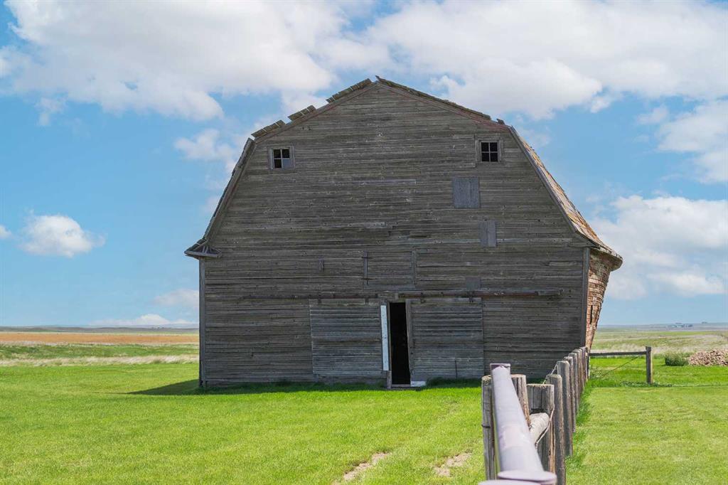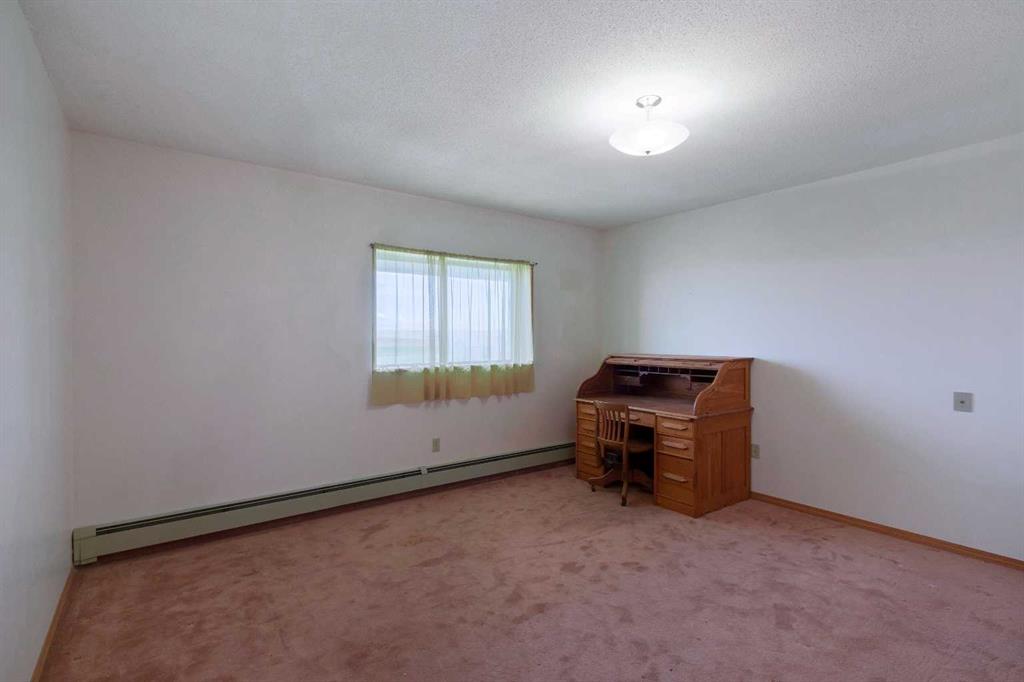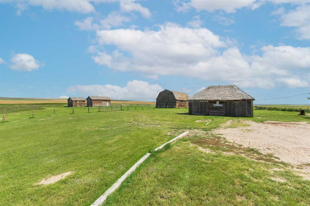 Just 15 minutes northeast of the Town of Vulcan, this 8.86-acre property offers a rare opportunity to own a solidly built country home with room to make it your own. Constructed in 1981 with concrete block exterior walls and poured concrete basement walls, this bungalow boasts over 2,450 sq. ft. on the main level, plus a 278 sq. ft. upper level with a walk-out deck. The home has a dated interior but tremendous potential to increase value with cosmetic updates. The main floor features an open-concept kitchen, dining, and living room, four spacious bedrooms, a full bathroom, a large laundry room, and a mudroom with sink at the main entrance. The upper level offers a bright family room with deck access and sweeping views of the countryside. The basement, currently used for storage, has a gravel floor, high ceilings, and great potential for development. Recent updates include a boiler system replaced within the past five years. Water is supplied by a drilled well, and there is also a right of way for a water co-op on the property. The acreage includes fenced pasture land, an older but well-maintained shop, additional older buildings used for storage, and an older barn in poor condition. The peaceful setting is enhanced by a natural draw—a small valley—running through the pasture at the north end of the property. If you’re searching for a strong, well-built home in a tranquil rural setting—ready for your personal touch—this property is worth a closer look.