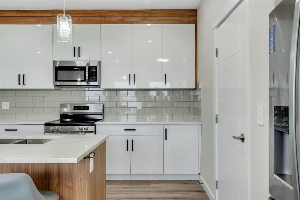 OPEN HOUSE - SATURDAY, FEB 7 | 3:00 PM – 5:00 PM**Finally… the wait is over! LIVE UP & RENT DOWN backing onto pond views! A rare opportunity in the sought-after community of Strathmore Lake Estates - this almost-new NO CONDO FEE townhome delivers lifestyle, upgrades, and built-in income potential in one smart package featuring a basement suite with separate entrance that is already rented providing instant mortgage support from day one. WOW - watch the video tour! 3 BEDROOMS | 3.5 BATHROOMS | STUDIO BASEMENT (ILLEGAL SUITE) | FRONT DOUBLE ATTACHED GARAGE | LARGE WINDOWS | CHEF’S DREAM KITCHEN | BACKING ONTO POND | BUILT IN 2023 | UPGRADED THROUGHOUT. From the moment you arrive, the modern curb appeal and premium pond-backing location set this home apart offering scenic views, added privacy, and a peaceful atmosphere rarely found in townhome living. Step inside to a bright, open-concept main floor enhanced by luxury vinyl plank flooring, upgraded railings, and large windows that flood the space with natural light while showcasing peaceful pond views. The chef-inspired kitchen features quartz countertops, ceiling-height dual-tone cabinetry, upgraded appliances, and a generous island perfect for entertaining. The dining area flows seamlessly into a spacious living room where patio doors lead to your 10’ × 10’ deck and huge fenced backyard ideal for relaxing evenings or weekend gatherings. Upstairs, you’ll find three spacious bedrooms, convenient upper laundry and two full bathrooms finished with stylish ceramic tile. The primary suite is a true retreat, complete with a walk-in closet and private ensuite featuring dual sinks and a standing shower. The basement adds incredible flexibility with a studio illegal suite setup featuring a kitchen/wet bar and full bathroom - ideal for investors, extended family, or guests. Families will appreciate being within walking distance to schools, playgrounds, shopping, walking paths, ponds, and green space, with quick access to Highway 1 for an easy commute. Lifestyle + Location + Income Potential = Exceptional Value. Don’t miss your chance to own in one of Strathmore’s most desirable lake communities.